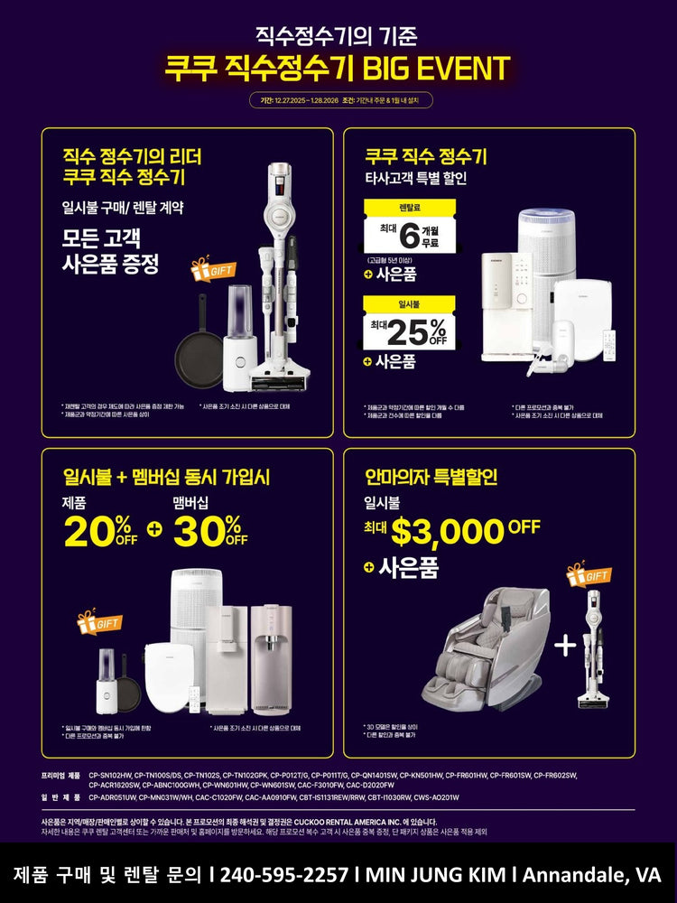 쿠쿠 렌탈 아메리카 공식 판매처 버지니아 애난데일점에 오신걸 환영합니다.